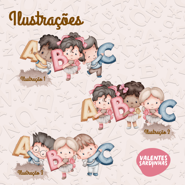 Escolha a cor de fundo, temos 3 cores diferentes, bem como, a ilustração mais gosta (na 4ª imagem estão todas as três ilustrações. possíveis).