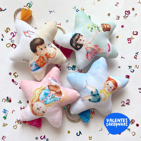 Escolha a ilustração mais parecida com o seu/sua filh@, tem 10 ilustrações diferentes, e o padrão de fundo da estrelinha. (as ilustrações estão numeradas na 2ª imagem).