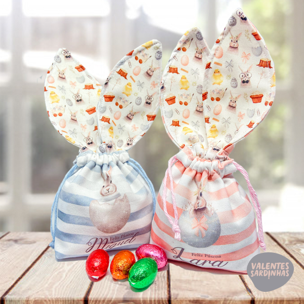 Feitos em tecido, recheados de ovinhos de chocolate, com umas orelhinhas super mega fofinhas!